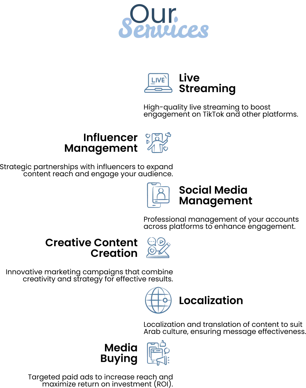 Thanks to our strong leadership, we have launched over 500 TCN & MCN in the MENA region, significantly contributing to the growth and development of live streaming, audio content, gaming, and short video production. Throughout our journey, we have managed and trained over 25,000 content creators and key opinion leaders (KOLs) on major platforms like BIGO and TikTok, while maintaining strategic relationships with industry leaders.